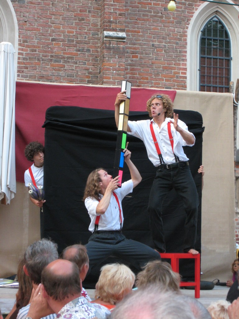 Buntes Programm aus klassischer Jonglage gemischt mit unkonventionellen “Jongliergeräten” und verrückter Wurftechnik. Ein geplantes Chaos, bei dem nicht nur die Jongleure, sondern auch die Zuschauer mitwirken können. Die Show stellen wir dabei mit Ihnen passend zum Anlass zusammen.